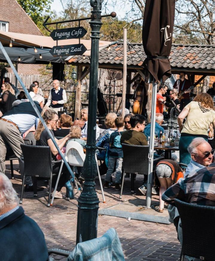 Ontdek ons royale en gezellige terras op een van de mooiste plekjes in het buitengebied van Oirschot. Hier is plaats voor wel 400 personen. Dus zoek jouw plekje op één van de loungebanken, aan de tafeltjes, rond de dansvloer, onder de parasols of bomen. De kinderen vermaken zich prima op de speeltoestellen.